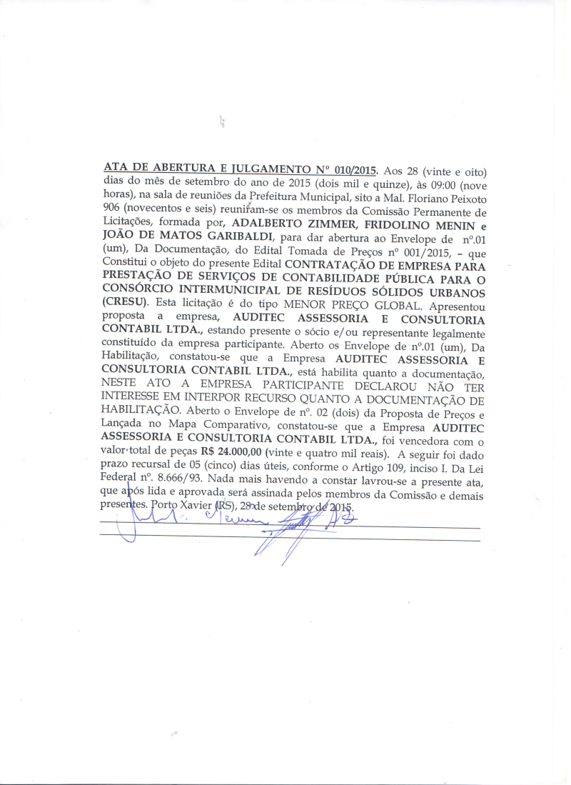 Ata Edital Tomada de Preços 001-2015 - CRESU