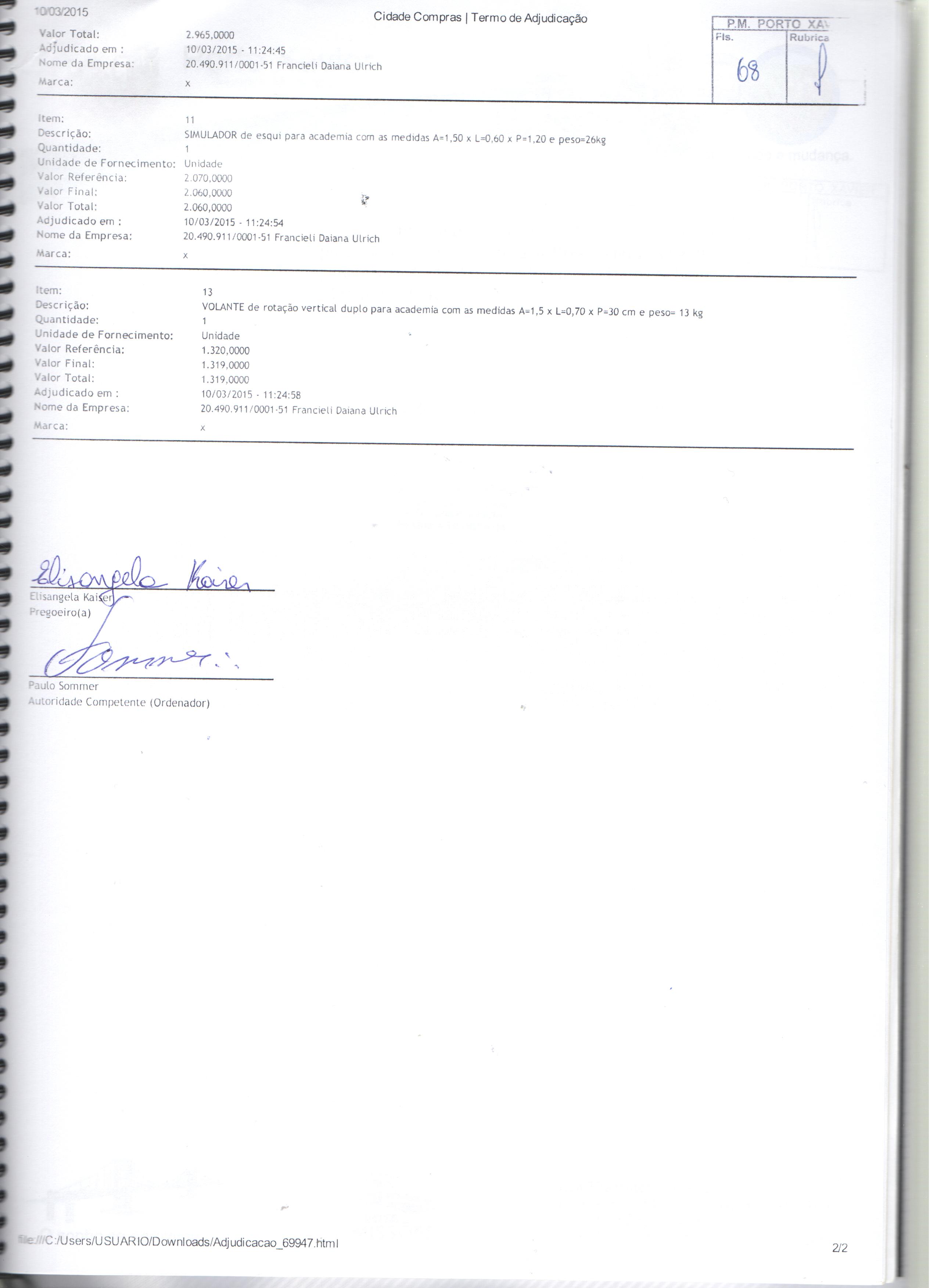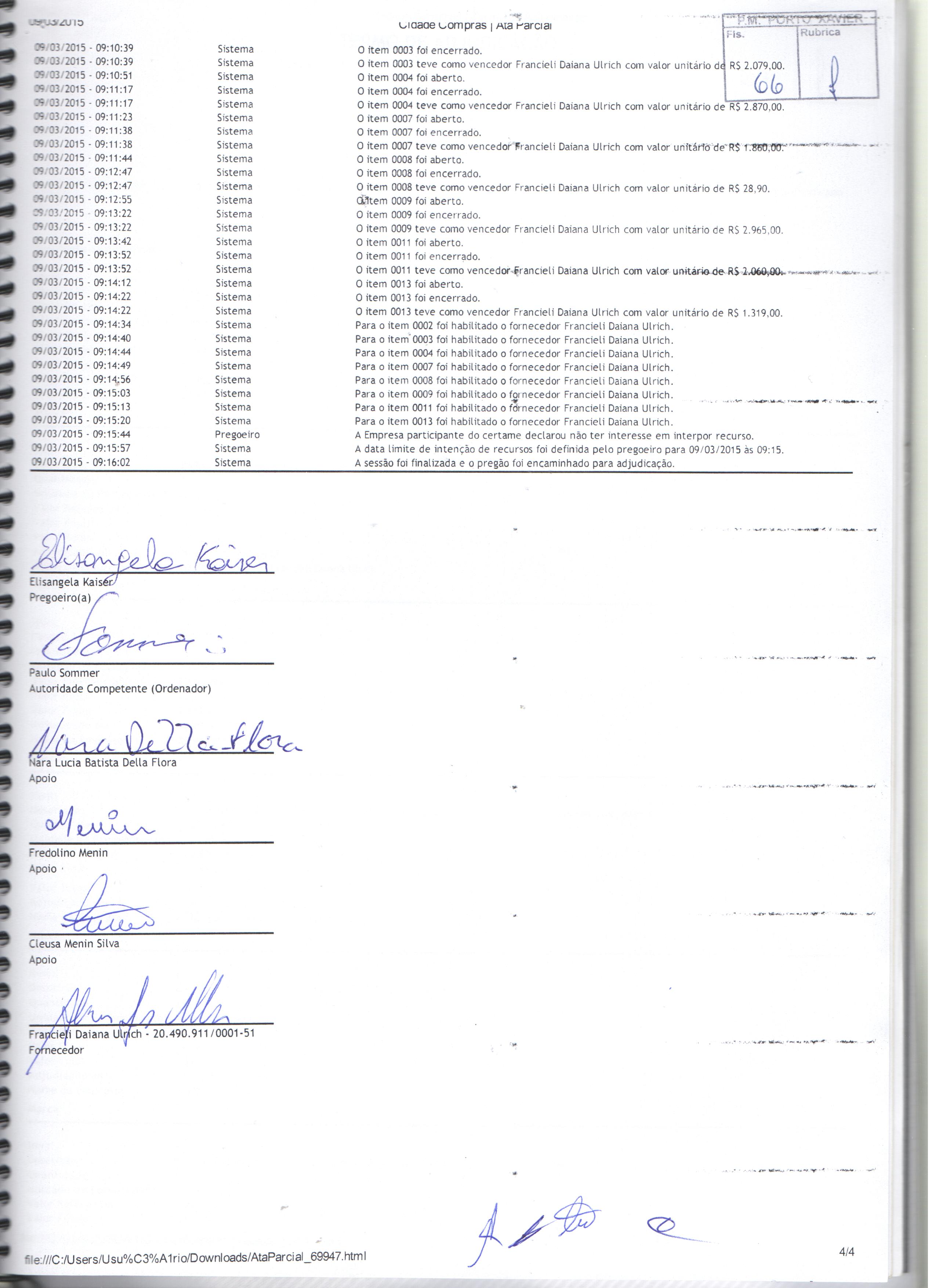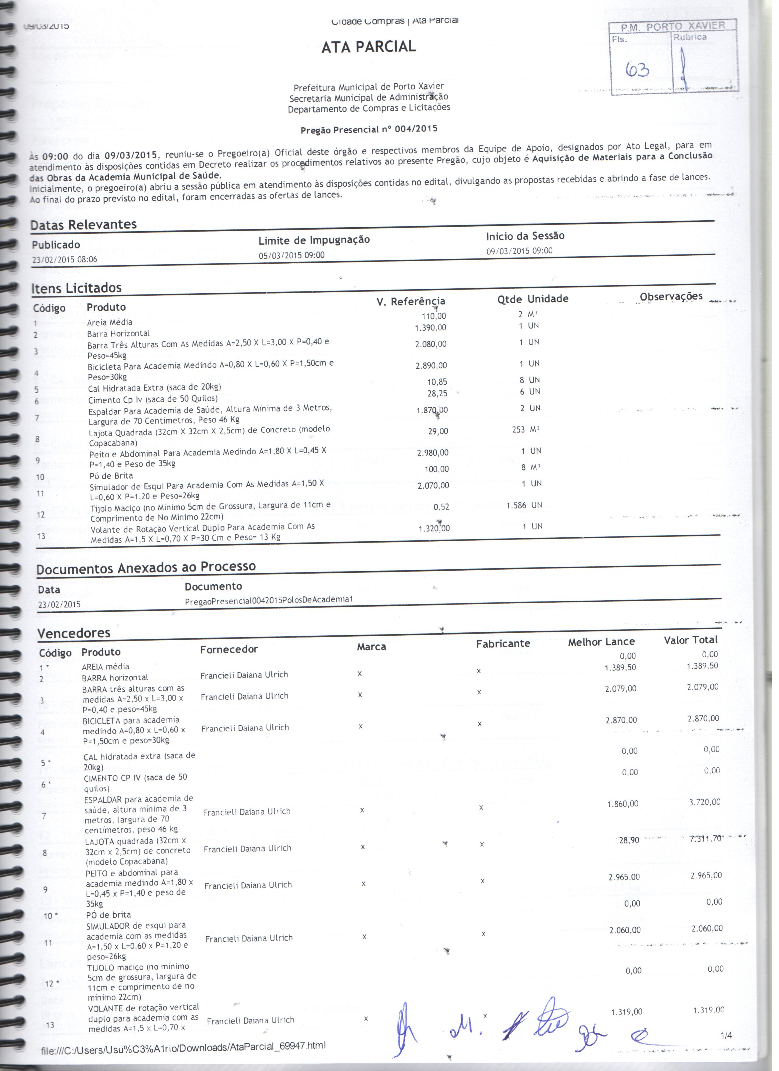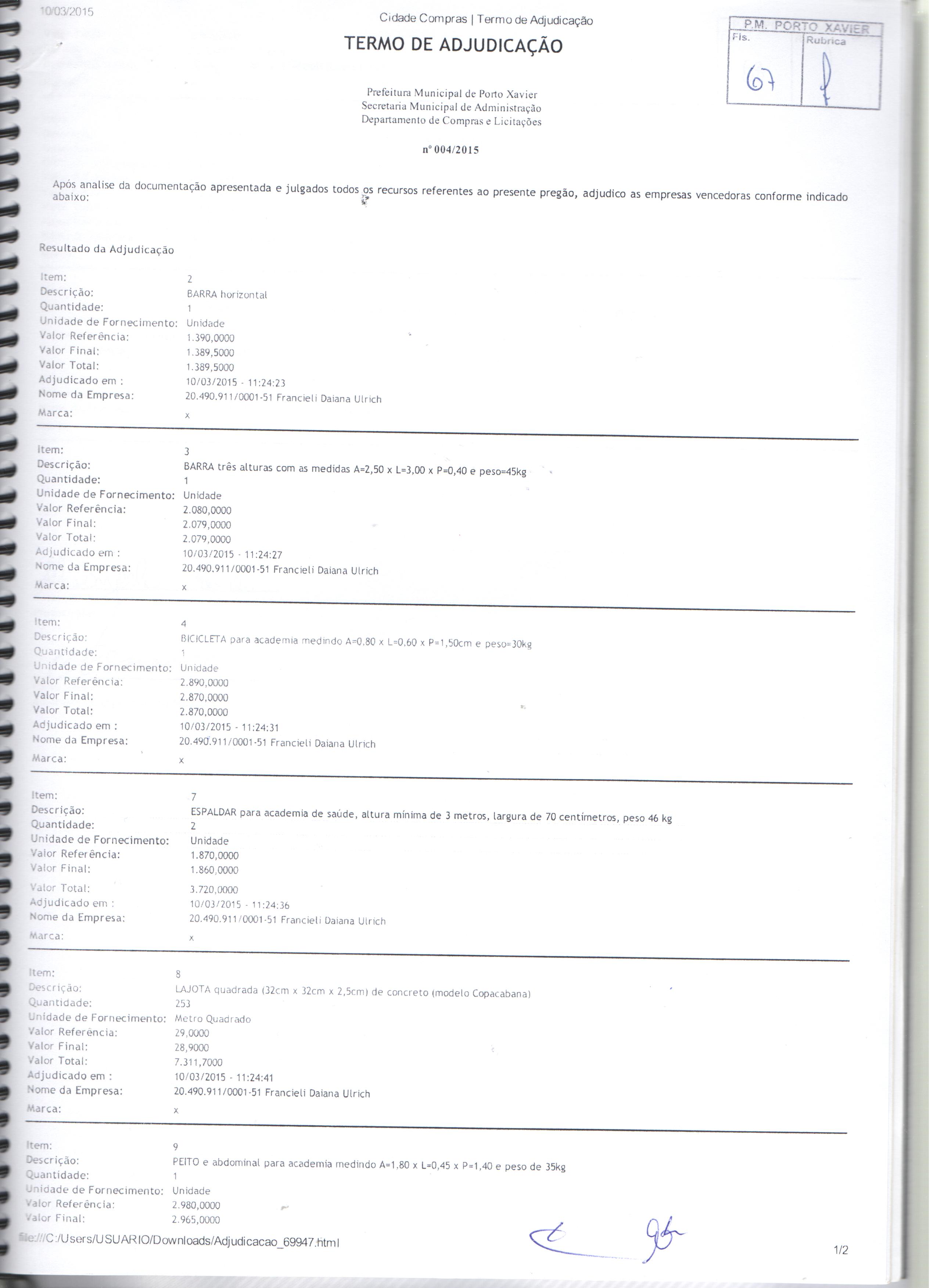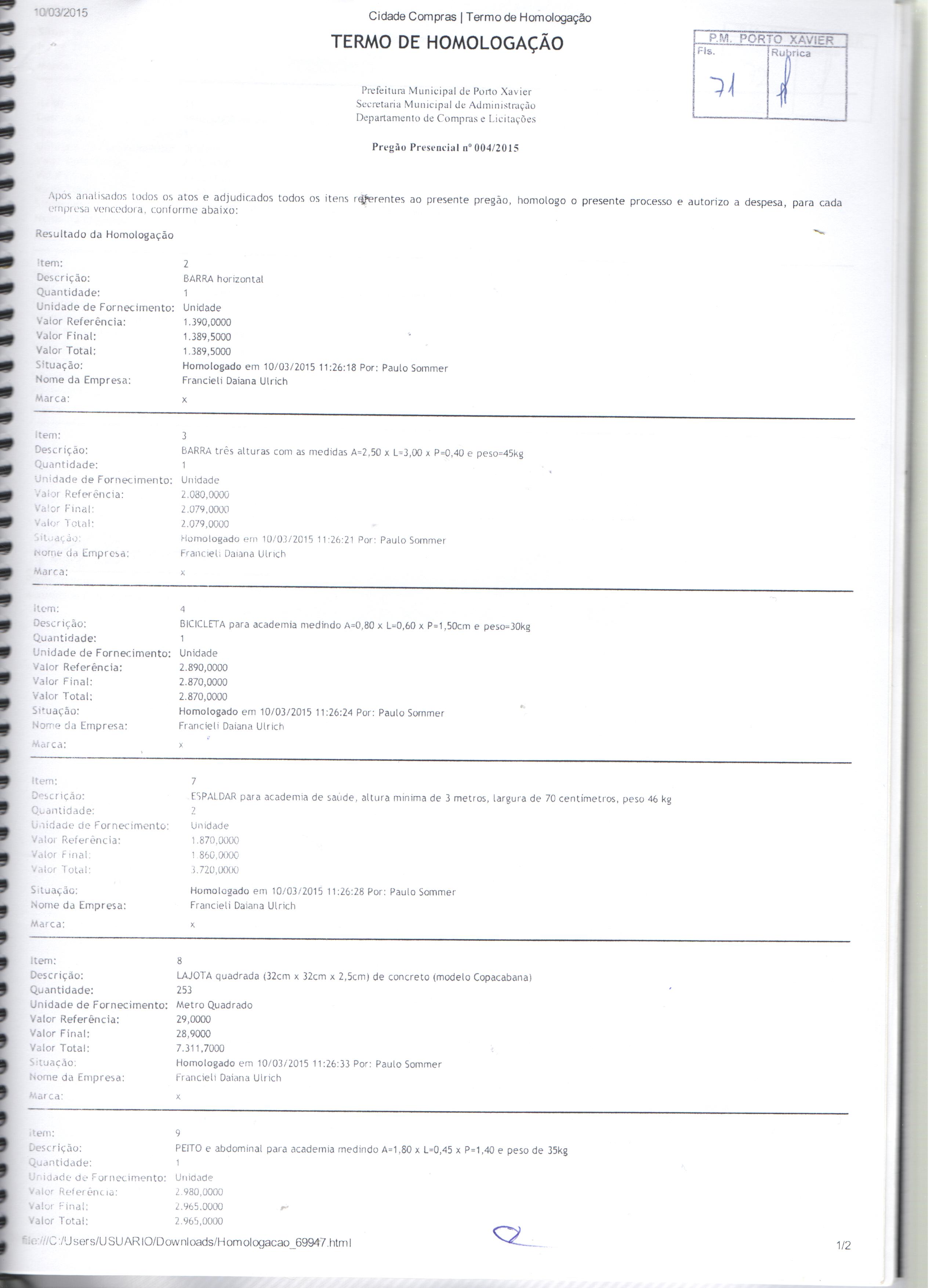 Descrição: Termo de Homologação, Adjudicação e Ata do Pregão Presencial 004-2015