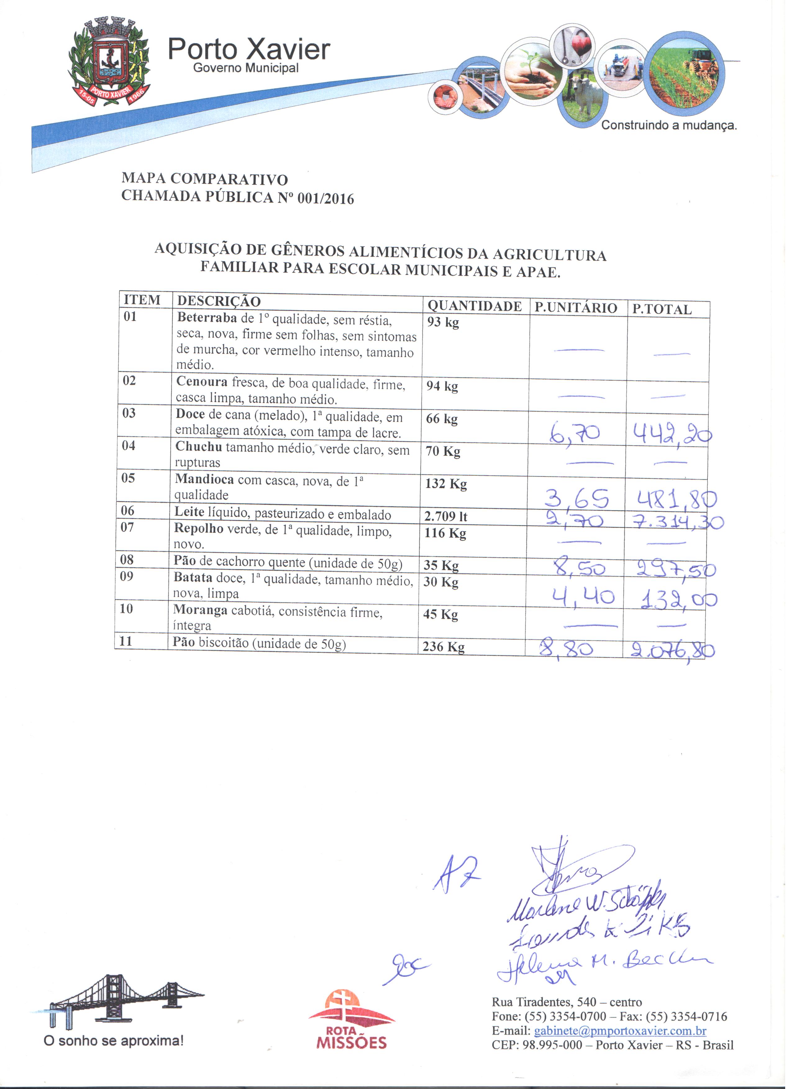 MAPA COMPARATIVO E AJUDICAÇÃO CHAMADA PÚBLICA 001-2016