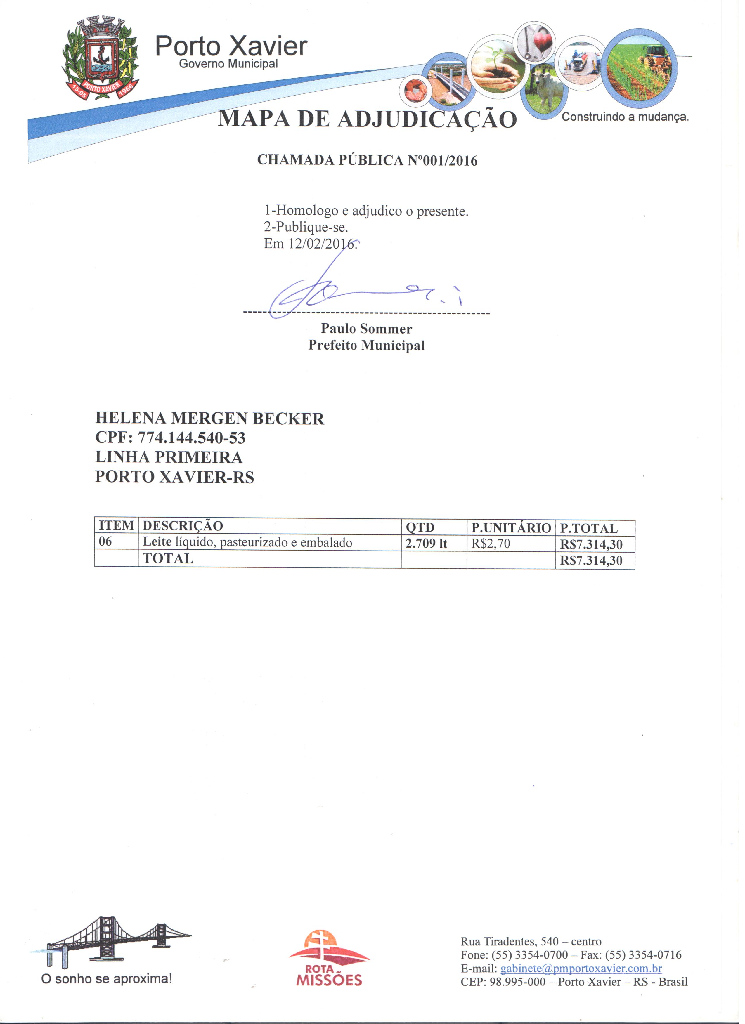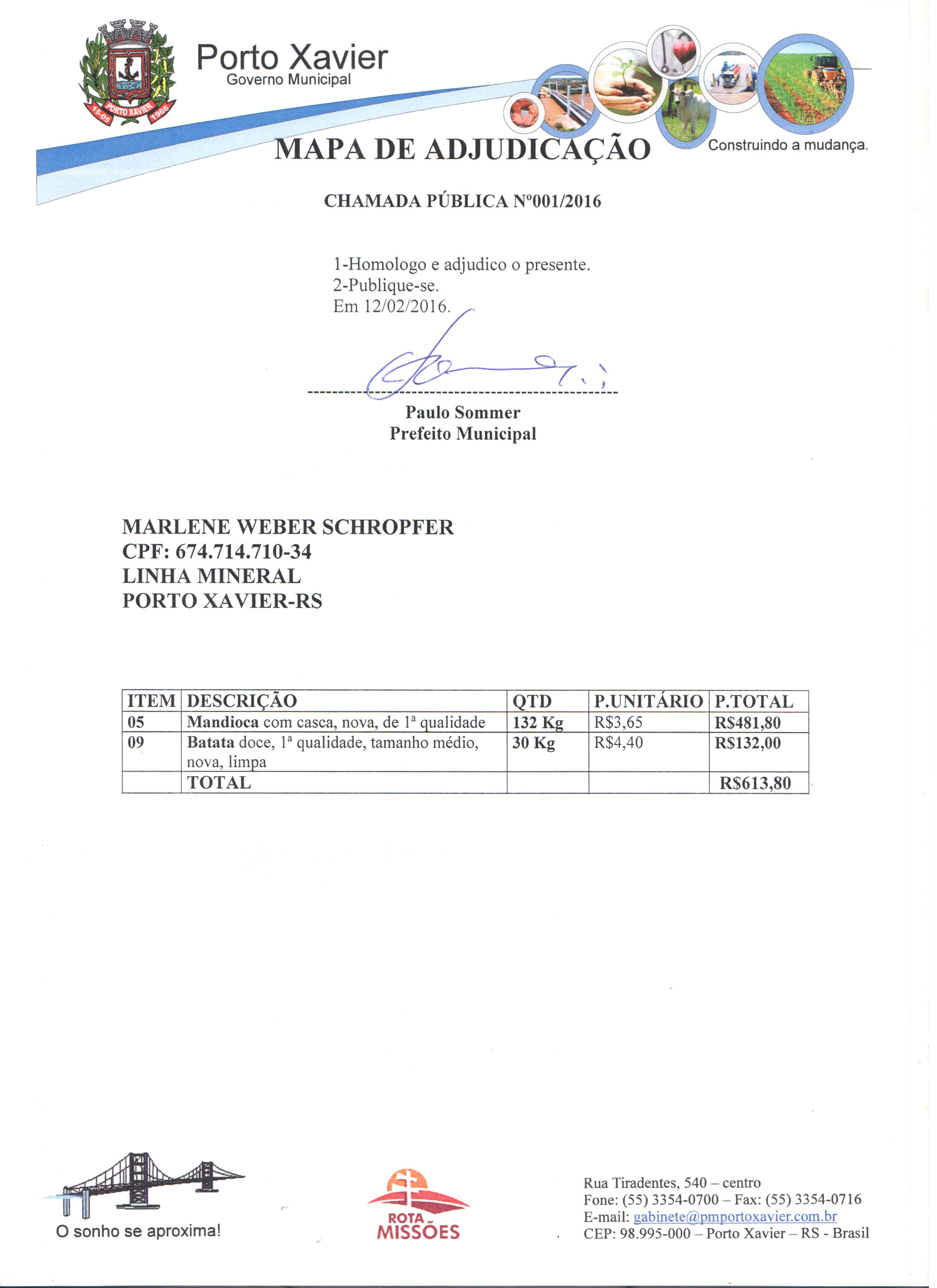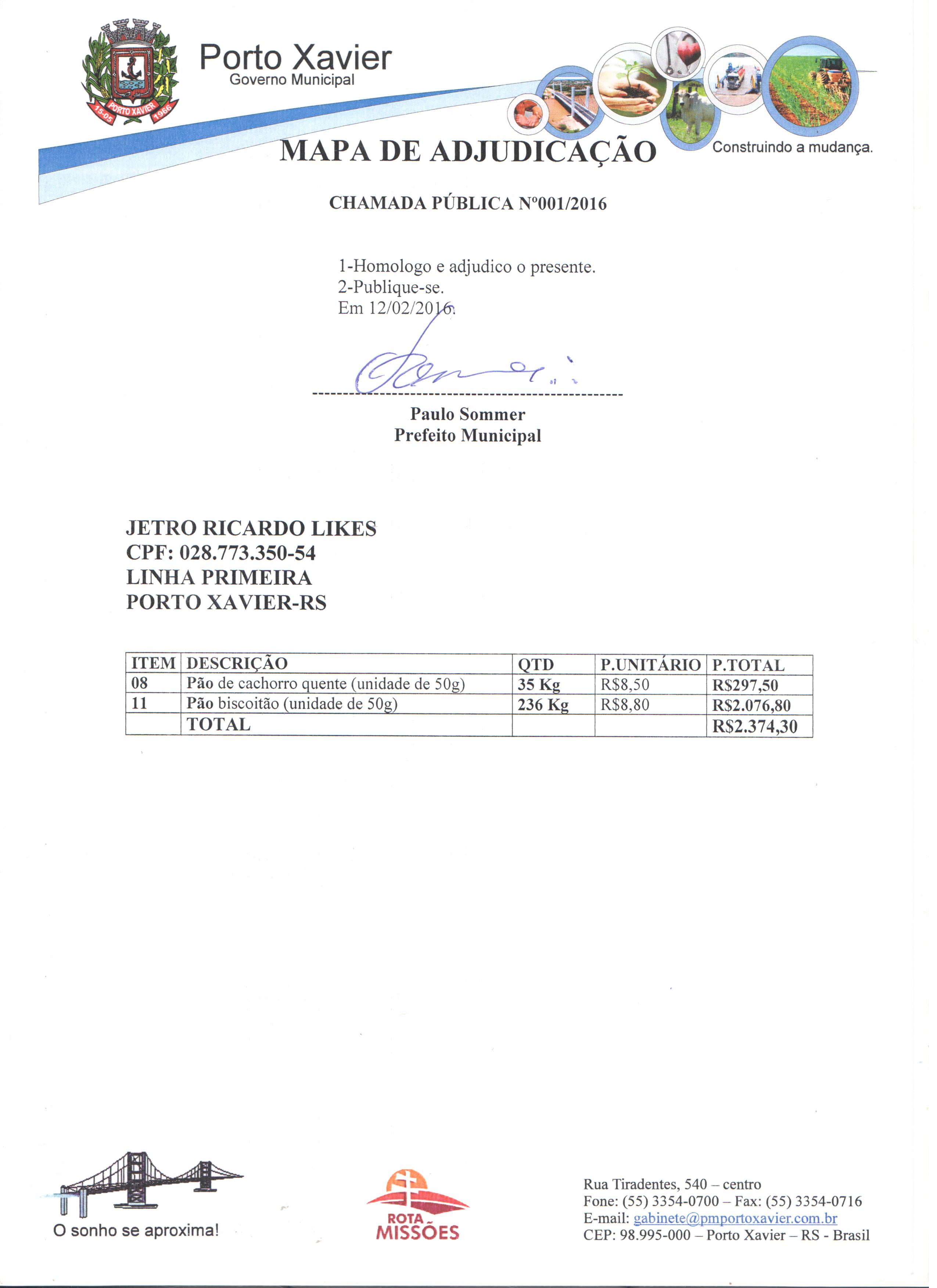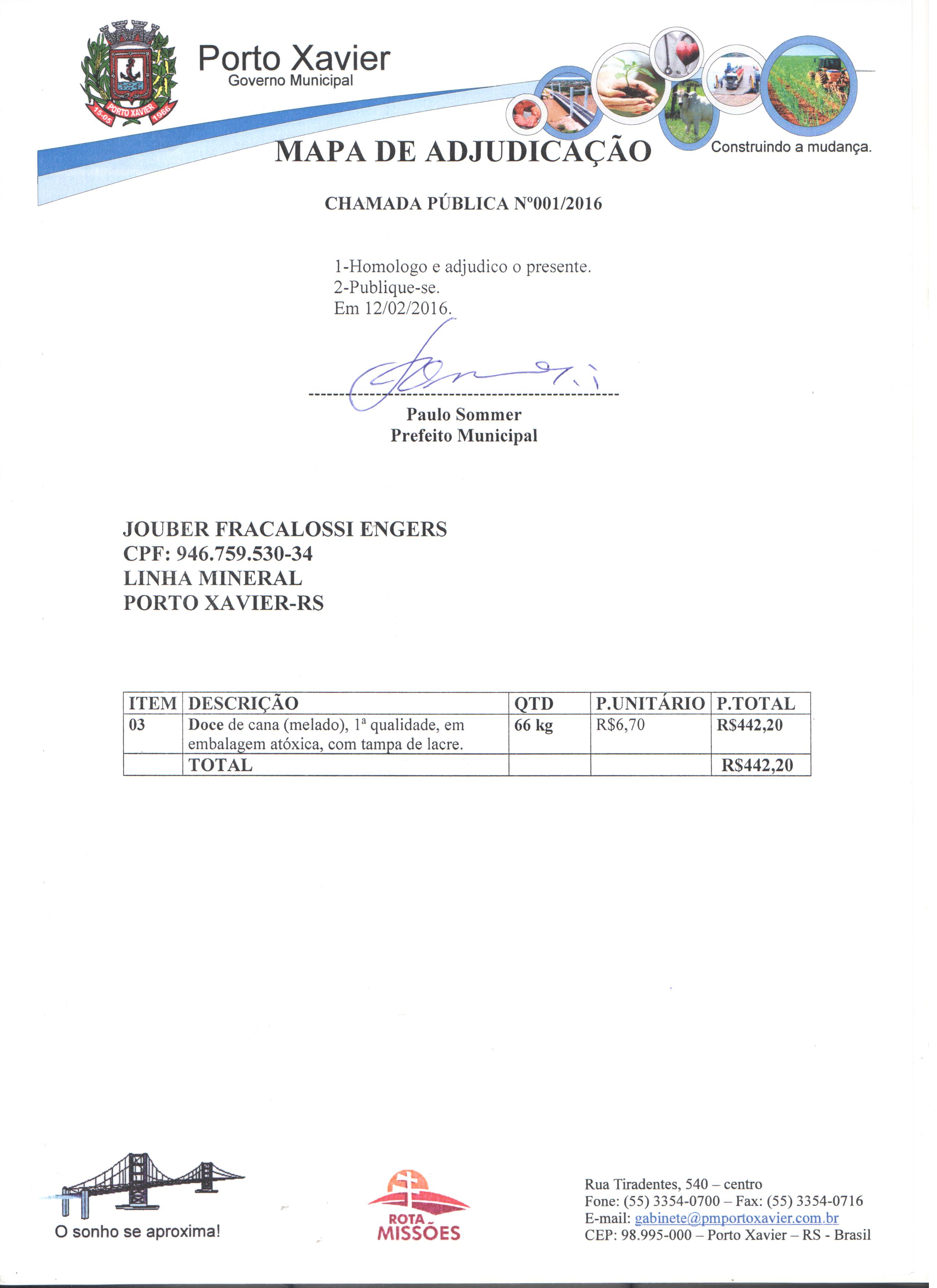 Descrição: Mapa Comparativo e Mapa de Adjudicação da Chamada Pública 001-2016
