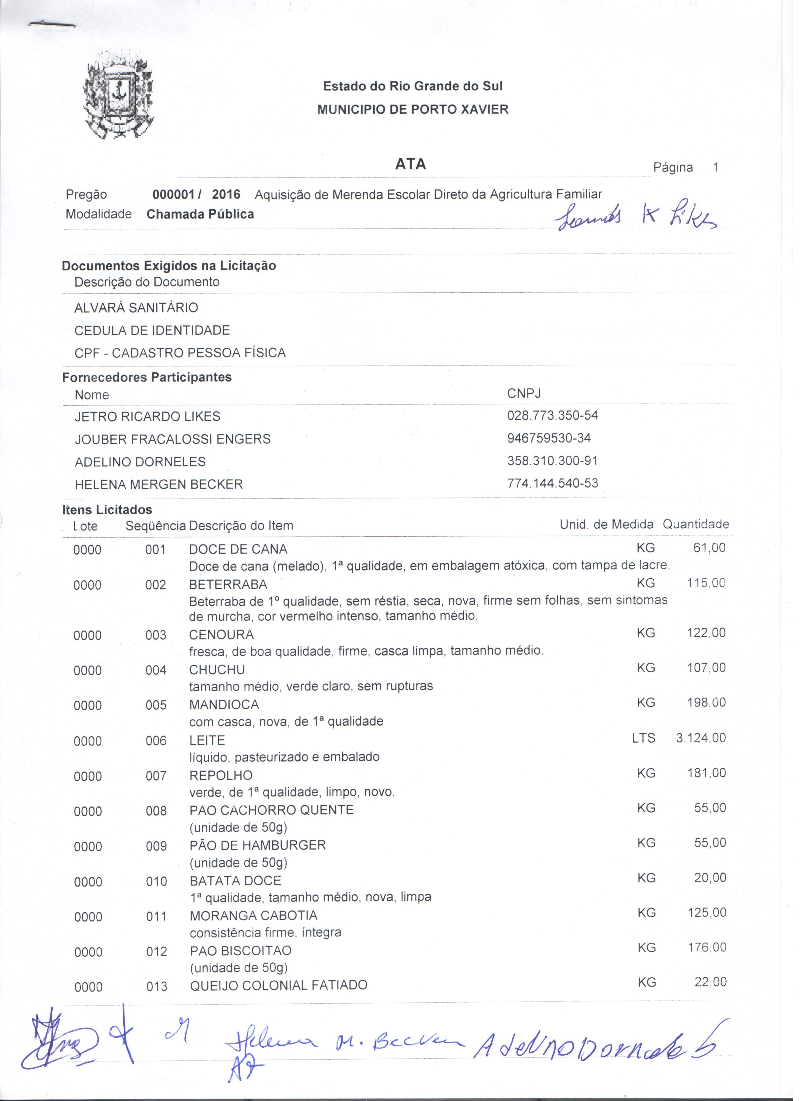 Descrição: Aquisição de gêneros alimentícios da agricultura familiar para atender os alunos matriculados nas escolas de Educação Infantil e Fundamental da Rede Pública Municipal e APAE de Porto Xavier/RS.