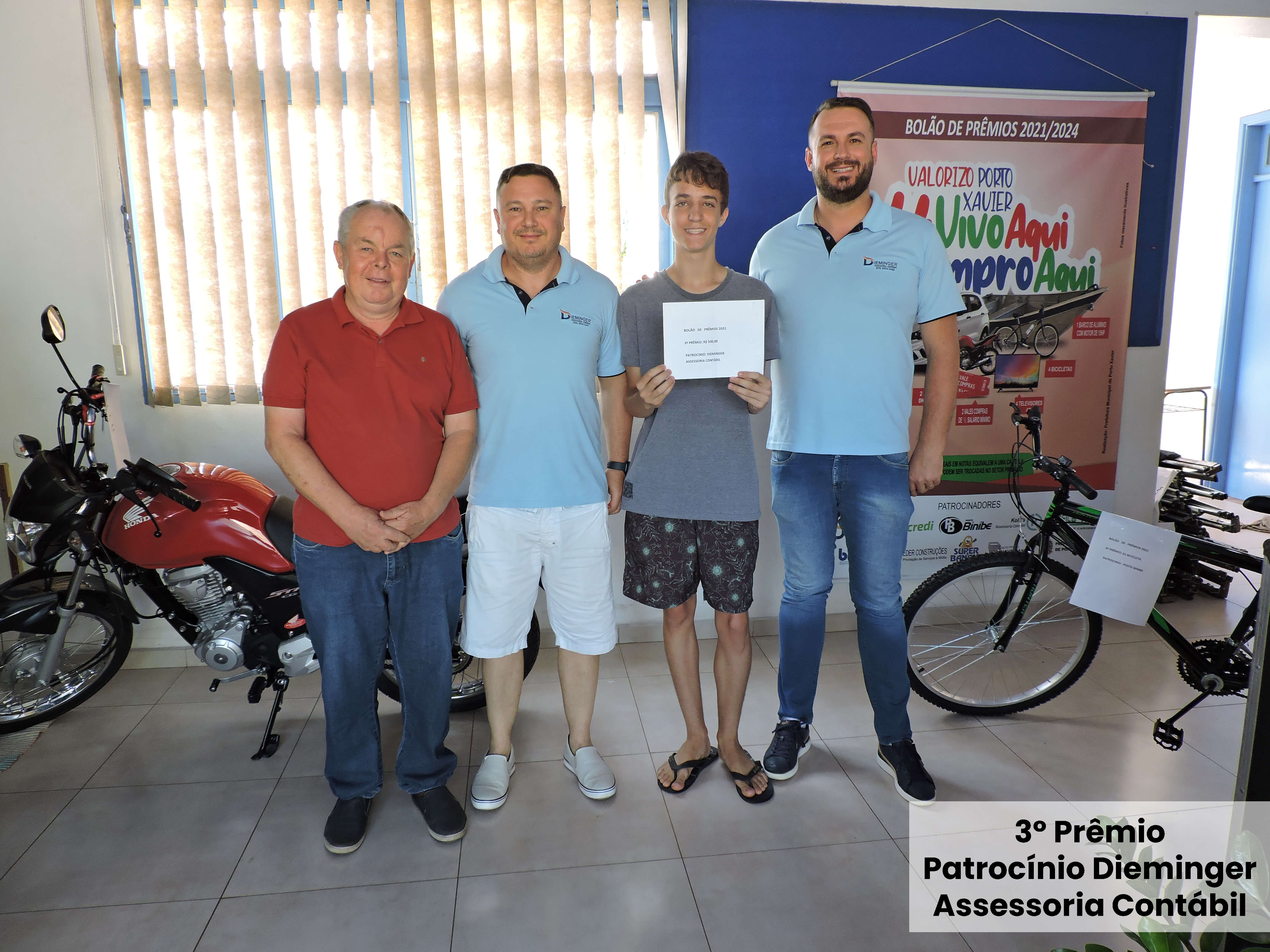 1º Prêmio: 1 moto 0km - Patrocínio Prefeitura de Porto Xavier, ganhador Alci Pedro Backes, com a cautela de nº 597.586