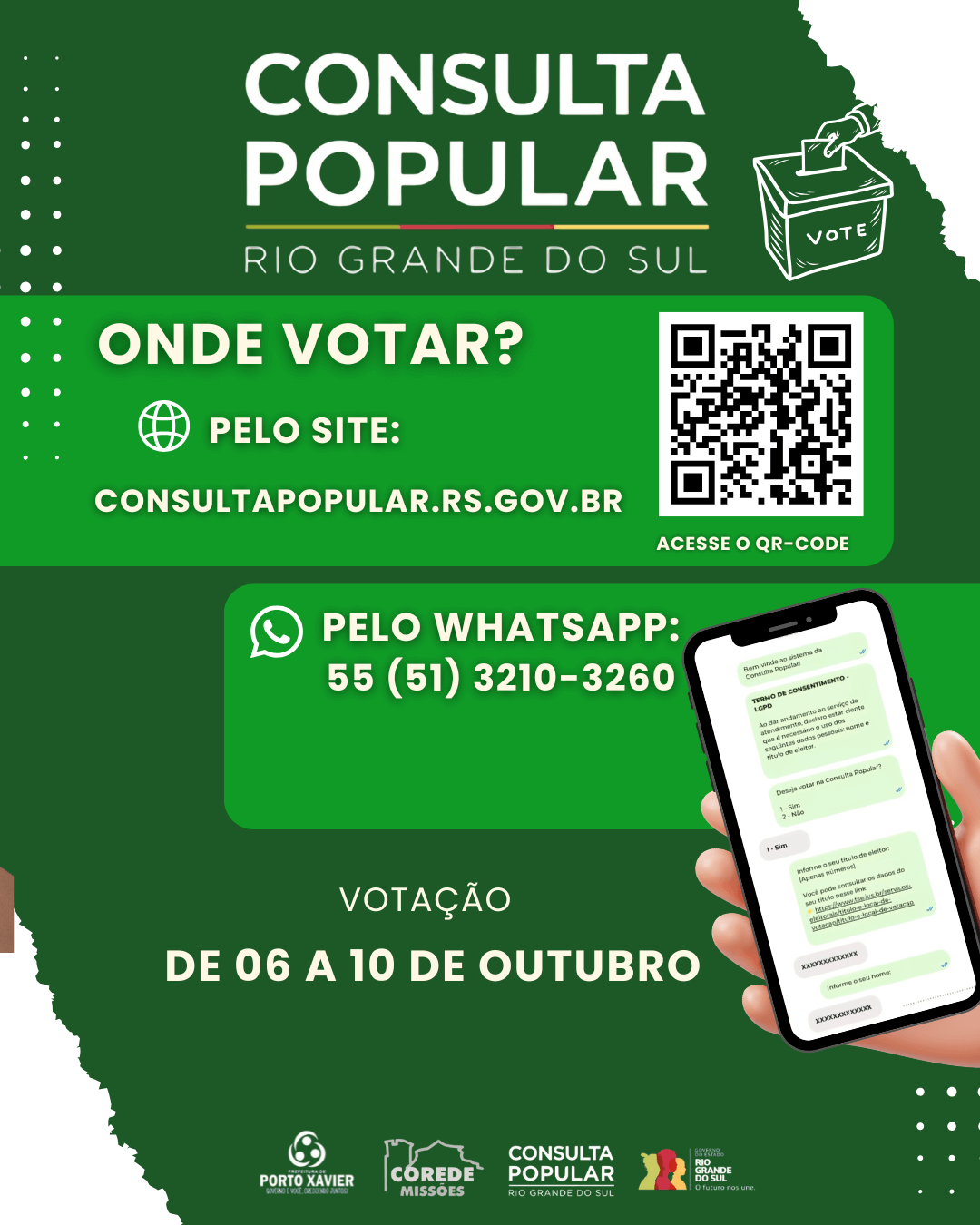 Acesse o link: https://consultapopular.rs.gov.br/inicial ou vote pelo WhatsApp através do número (51) 3210-3260.