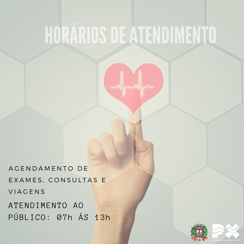 Agendamento de Exames, Consultas e Viagens: Atendimento ao Público, somente das 07h às 13h.