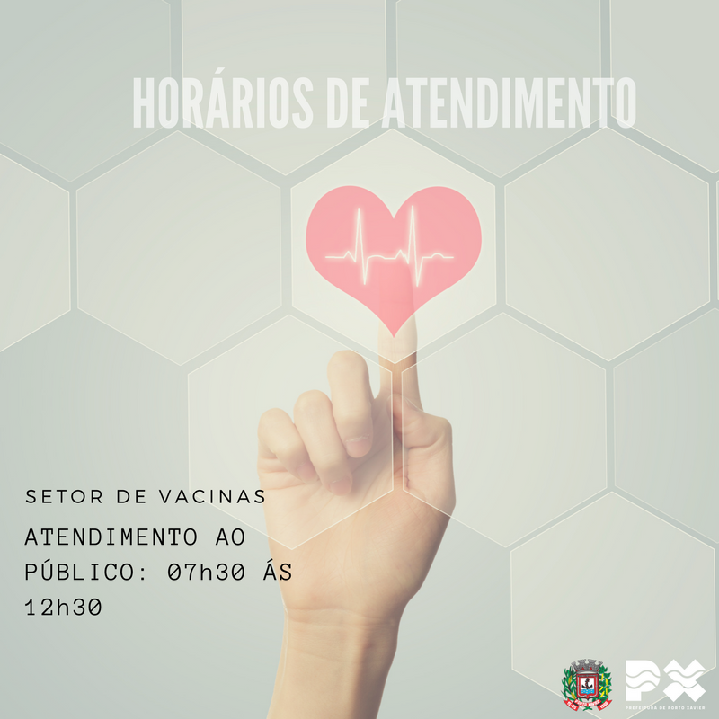 Setor de Vacinas: Atendimento ao Público, somente das 7h30min às 12h30min.