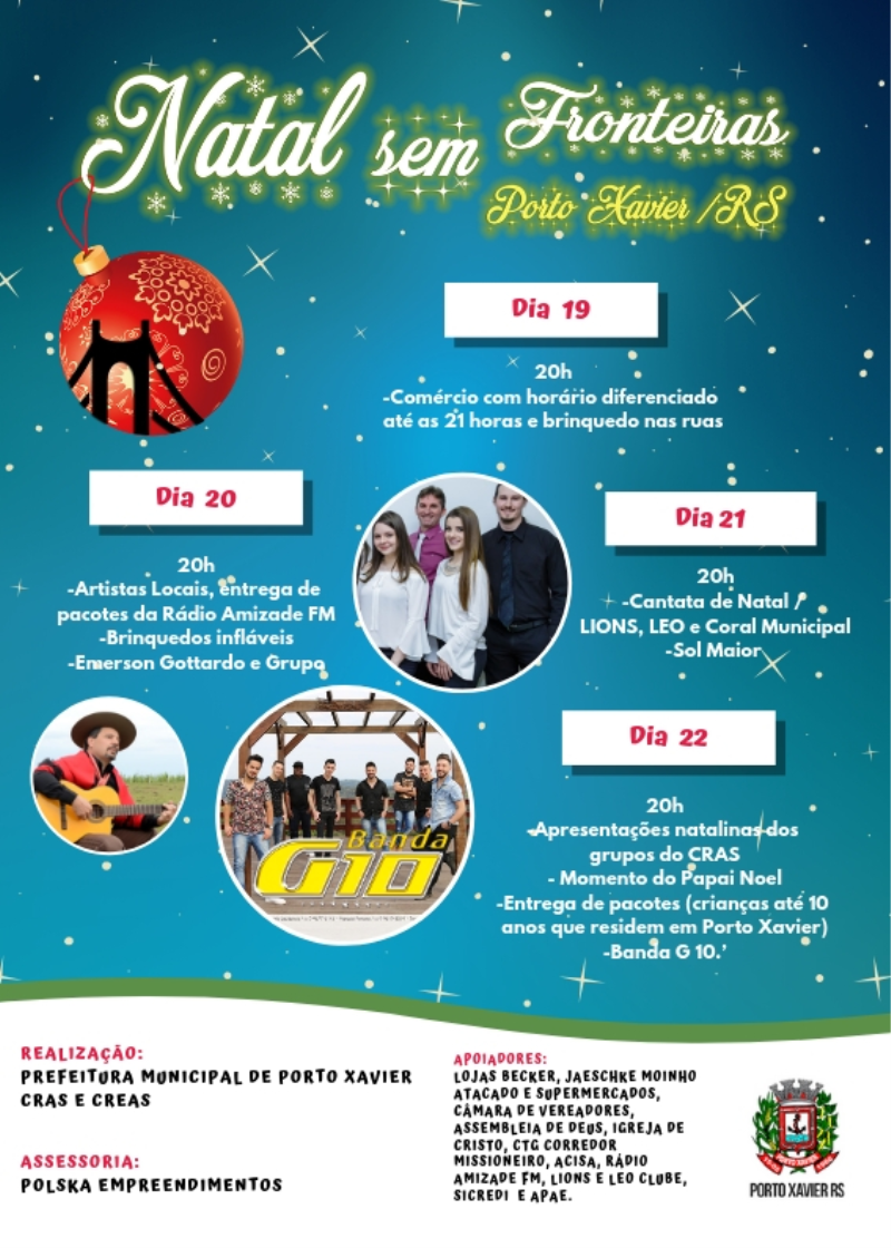 A Prefeitura Municipal de Porto Xavier por intermédio da Comissão Organizadora, divulga a Programação Oficial do Natal Sem Fronteiras - "Família e Comunidade".