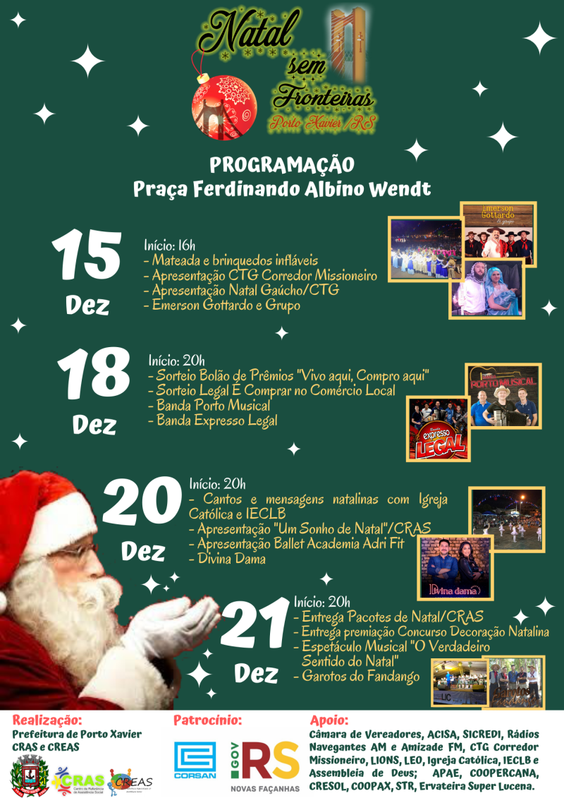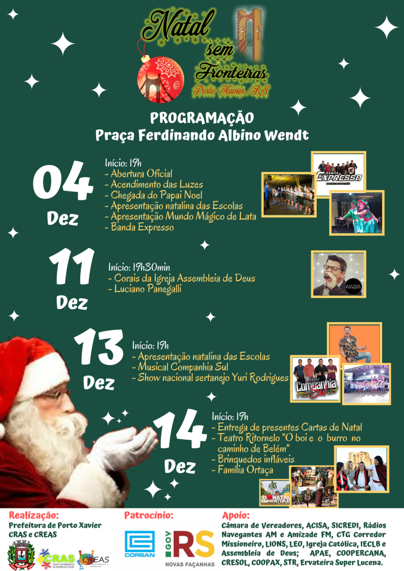 A Administração Municipal de Porto Xavier, através do CRAS e CREAS lança oficialmente a programação do NATAL SEM FRONTEIRAS – Edição 2019.