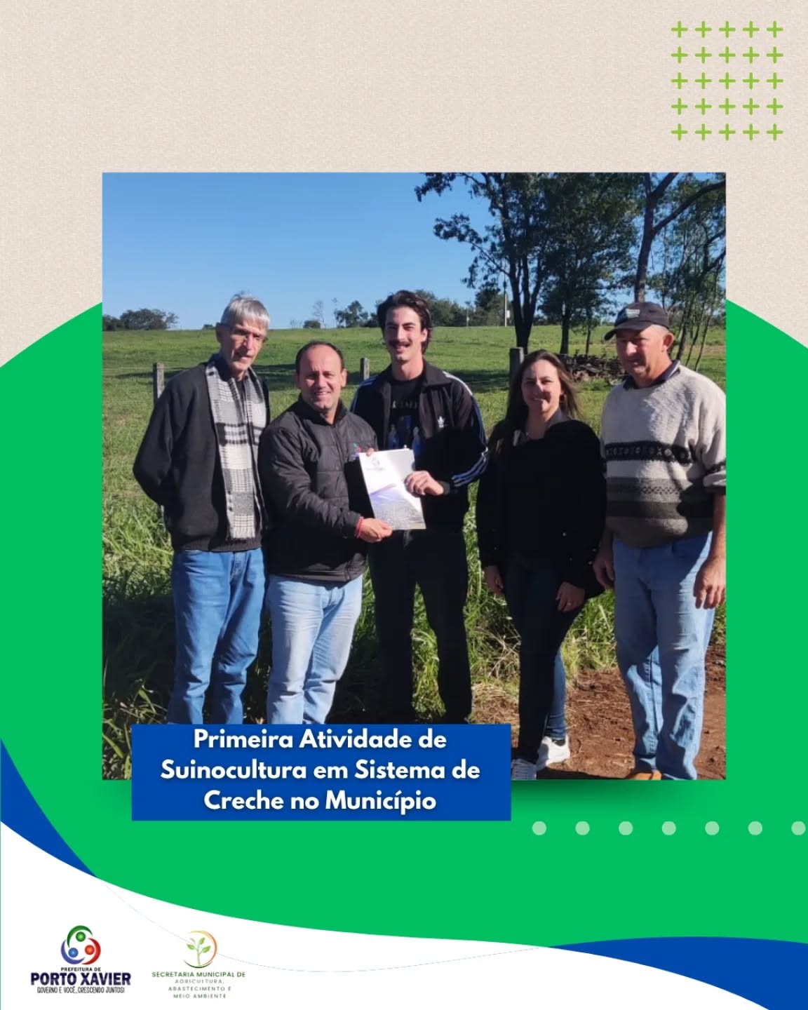 Na terça-feira (11/06), foi entregue a Licença de Instalação da primeira suinocultura em sistema de creche do município, na localidade Secção D. O projeto, com um pavilhão de 854m², é de propriedade de Luan Ribas Schulz, Gilberto Schulz e Marisete Leiria Ribas.