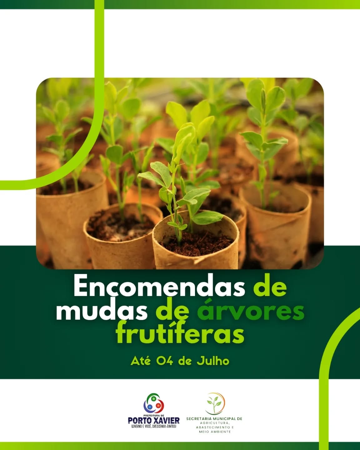 A Secretaria Municipal da Agricultura, Abastecimento e Meio Ambiente informa que está aberta a encomenda de mudas de árvores frutíferas.