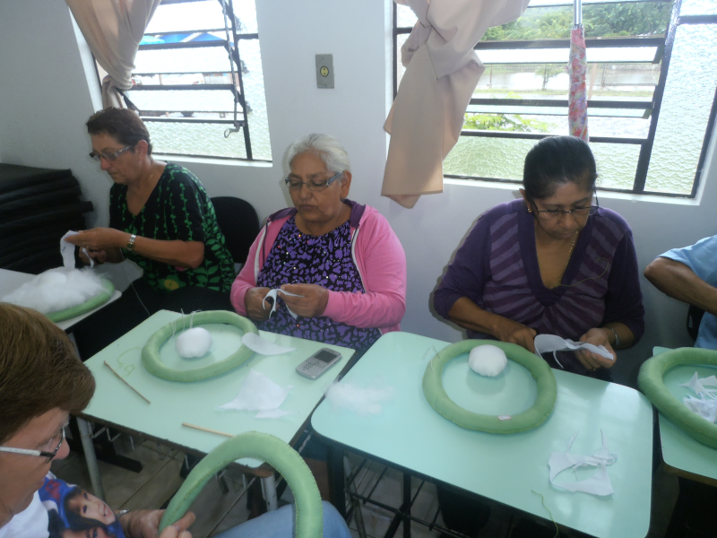 Trabalham na confecção, os grupos de Convivência e Fortalecimento de Vínculos de Crianças e Adolescentes, Grupo das Idosas e Senhoras, Grupos do PAIFI (Serviço de Proteção e Atendimento Integral a Família), Grupo de Gestantes, e Grupo de Mulheres e Pessoas com Deficiência.