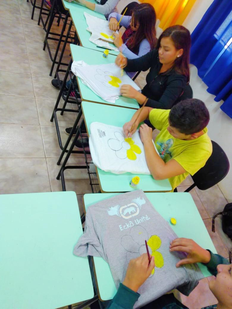 O time do Faça Bonito! As crianças e adolescentes foram desafiadas a pintar seus próprios uniformes, centrado com a flor símbolo do projeto. O “Faça Bonito” é um projeto da Secretaria Municipal de Assistência Social e Habitação e tem como principal objetivo, proteger e reivindicar os direitos de crianças e adolescentes contra o abuso e exploração sexual.