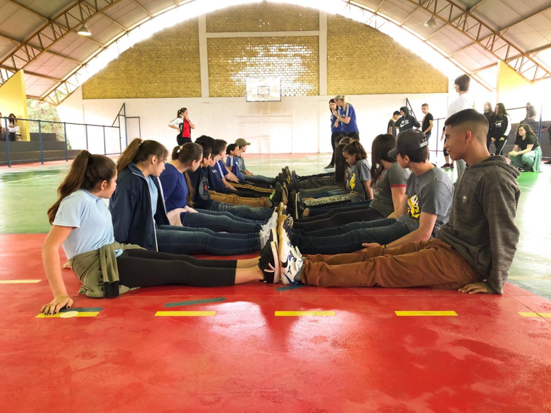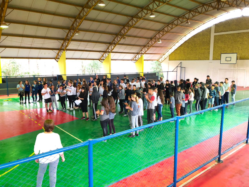 Durante a manhã de sexta-feira, 09, os alunos das Escolas Municipais de Ensino Fundamental Dona Irene Feier, Santos Dumont, Machado de Assis e Presidente Arthur da Costa e Silva participaram da Gincana de Integração entre alunos que frequentam os anos finais do Ensino Fundamental, em comemoração ao Dia do Estudante.