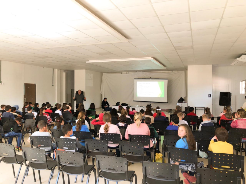 Os alunos ficaram atentos à cada palavra que o Secretário falava, com um caderninho, tomavam nota sobre a palestra. A atividade é uma ação do Projeto Autoridades Mirins, promovido pela Secretaria Municipal de Educação, Cultura e Desporto e é realizado anualmente com os alunos que frequentam os 4º anos dos educandários municipais e estaduais. A Professora Ledy Richter, da Secretaria de Educação, acompanhou os alunos na palestra.