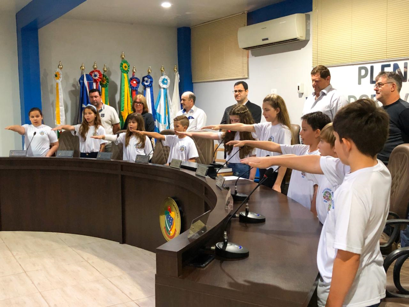 Na manhã de segunda-feira (21), na Câmara Municipal de Vereadores e no Gabinete do Prefeito, aconteceu a posse das Autoridades Mirins respectivas aos Poderes Executivo, Legislativo e Judiciário. Durante o ato, certificados e medalhas foram entregues às autoridades.