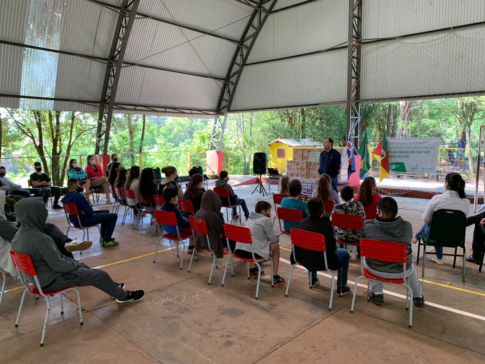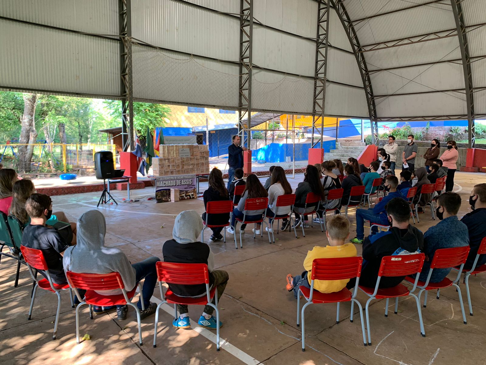 Participaram da atividade, o Excelentíssimo Prefeito Gilberto Menin, o Secretário Municipal de Educação Cultura e Desporto Igor Steinbrenner, a equipe pedagógica da SMECD e a Gerência do Sicredi local.