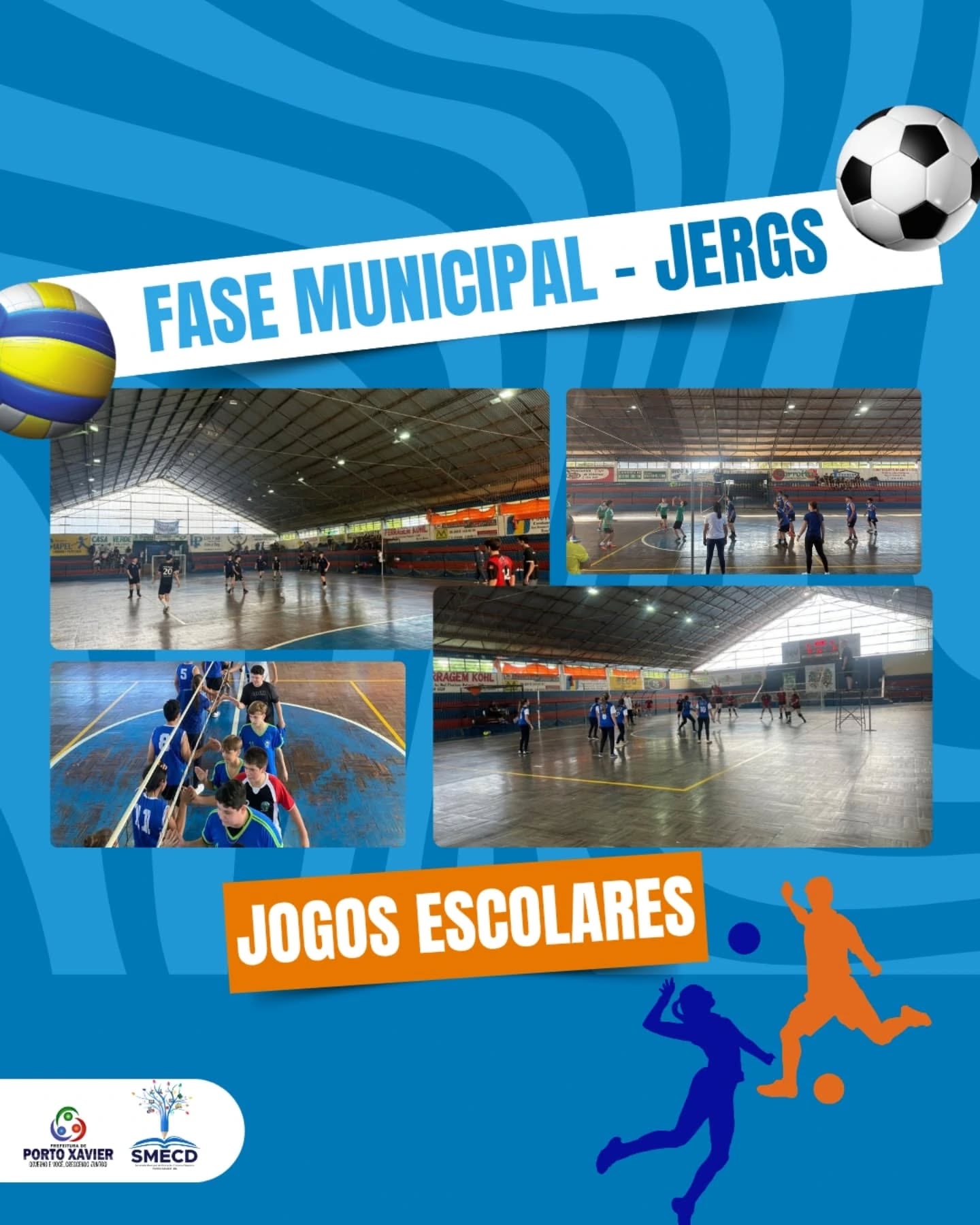 Nos dias 04 e 05 de junho, o Ginásio Municipal foi palco de muita emoção, disputa acirrada e grandes jogadas durante a fase municipal dos Jogos Escolares do Rio Grande do Sul (JERGS). Estudantes das escolas municipais e estaduais de Porto Xavier deram um verdadeiro espetáculo nas quadras, mostrando garra, união e muito talento no futsal e no vôlei. 💪🏐⚽