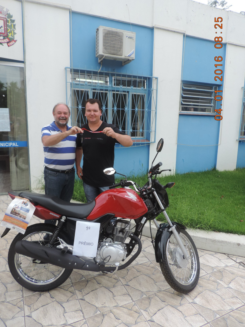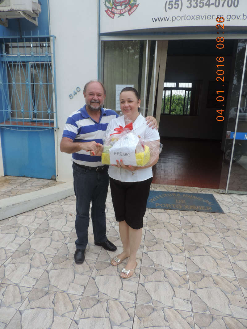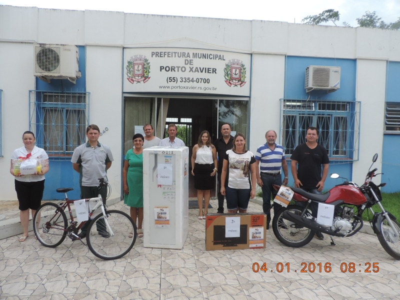 Os contemplados receberam seus prêmios pelo Prefeito Paulo Sommer em frente à sede da Prefeitura Municipal de Porto Xavier.