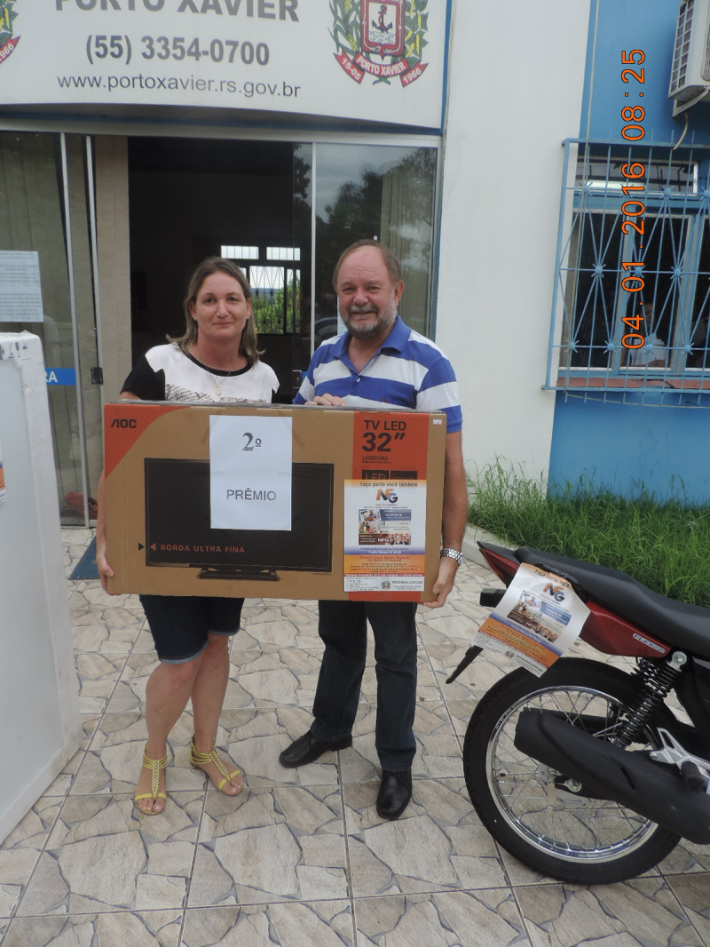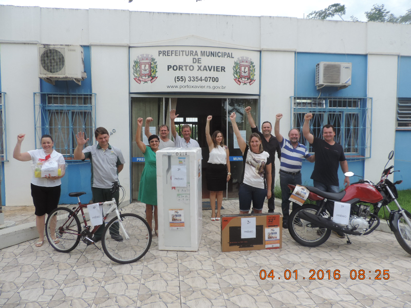 Foi realizado na quarta-feira (30/12), na Praça Central o sorteio da etapa final de 2015 do Bolão de Prêmios "Nota na mão, prêmios de montão", da Prefeitura Municipal de Porto Xavier, no qual os ganhadores foram: