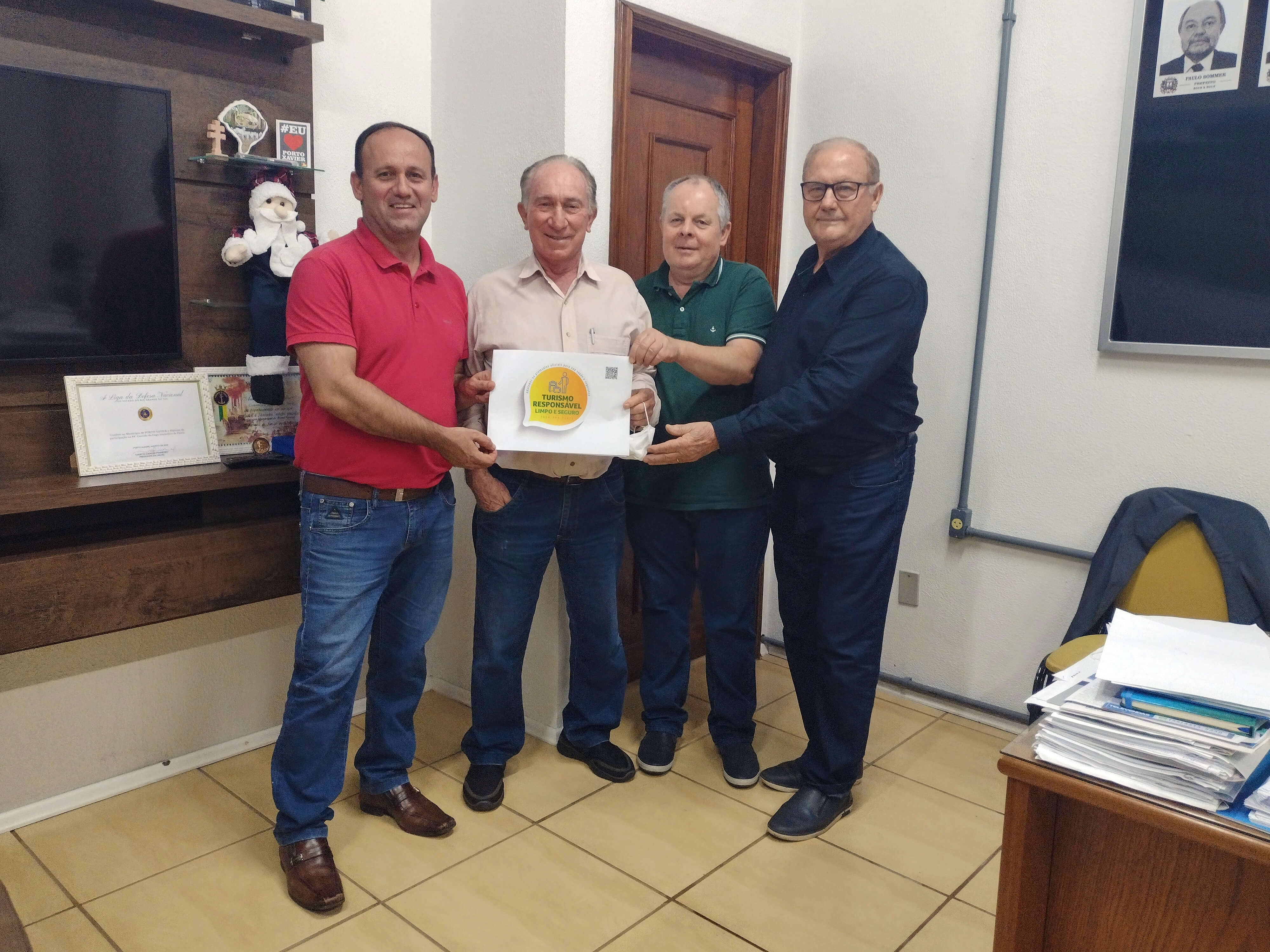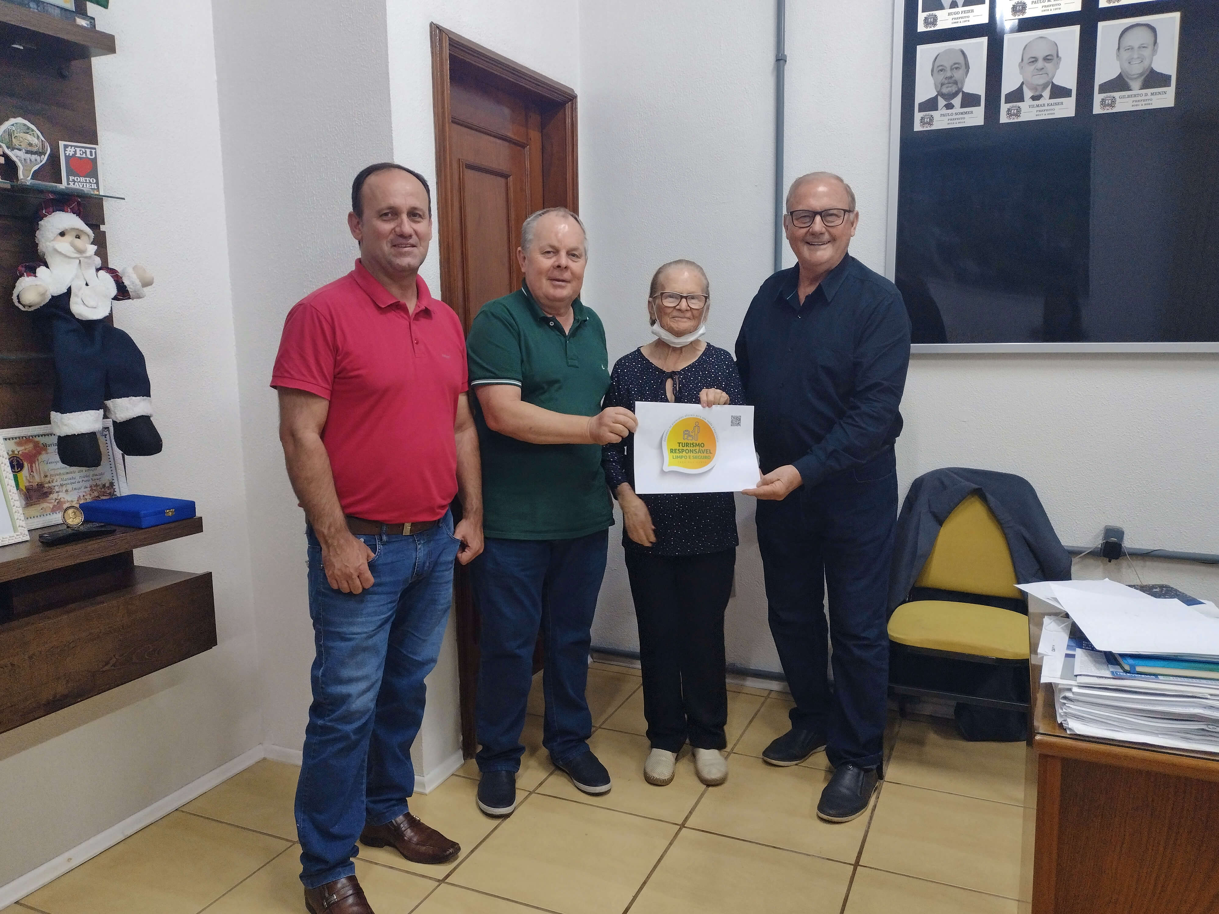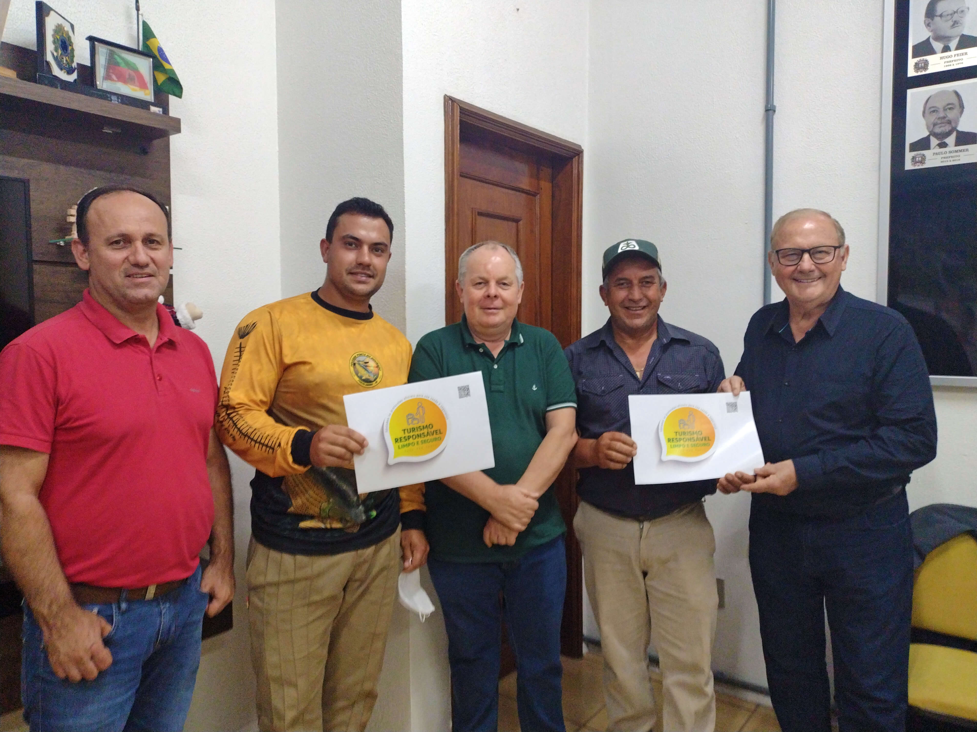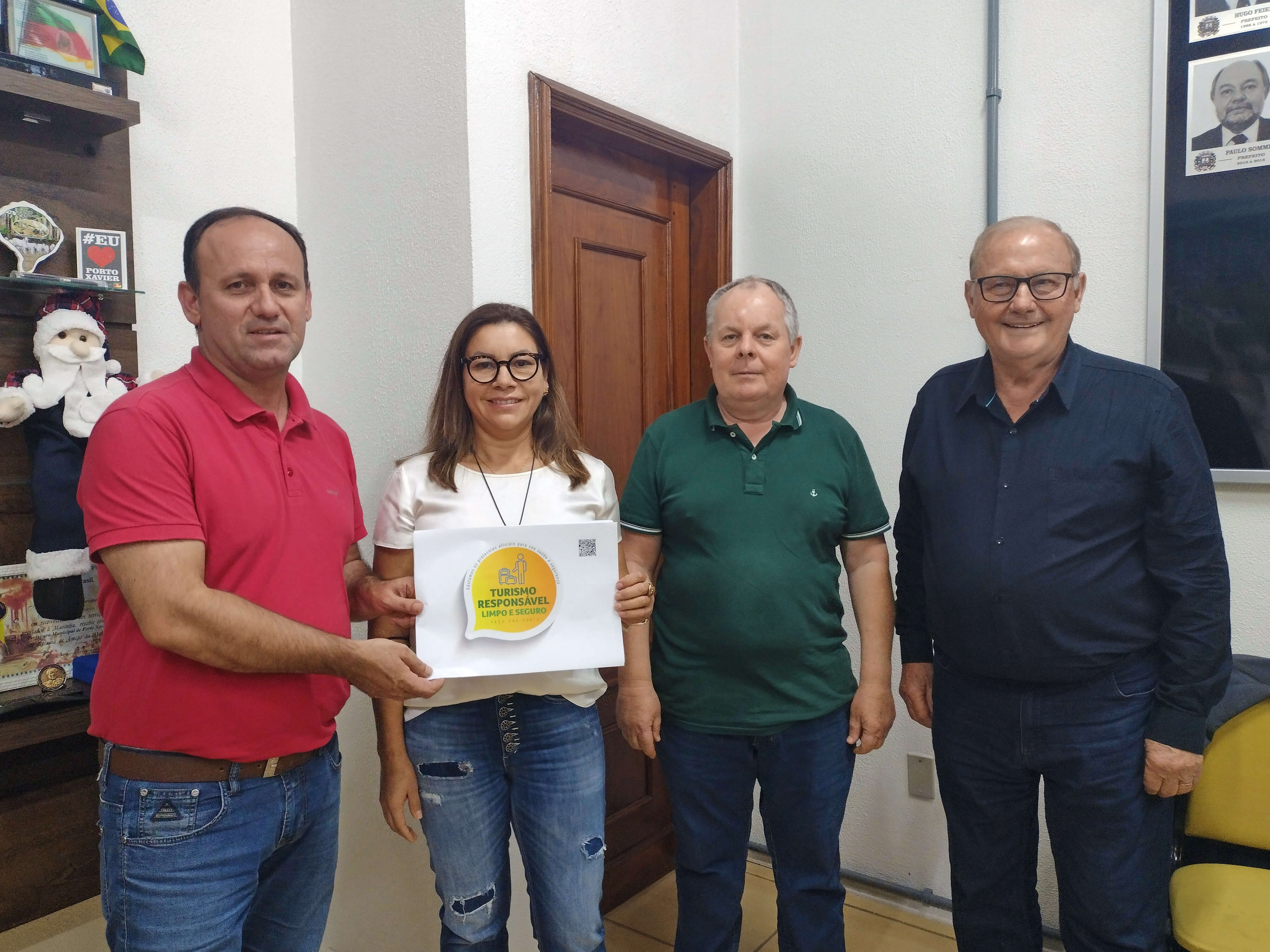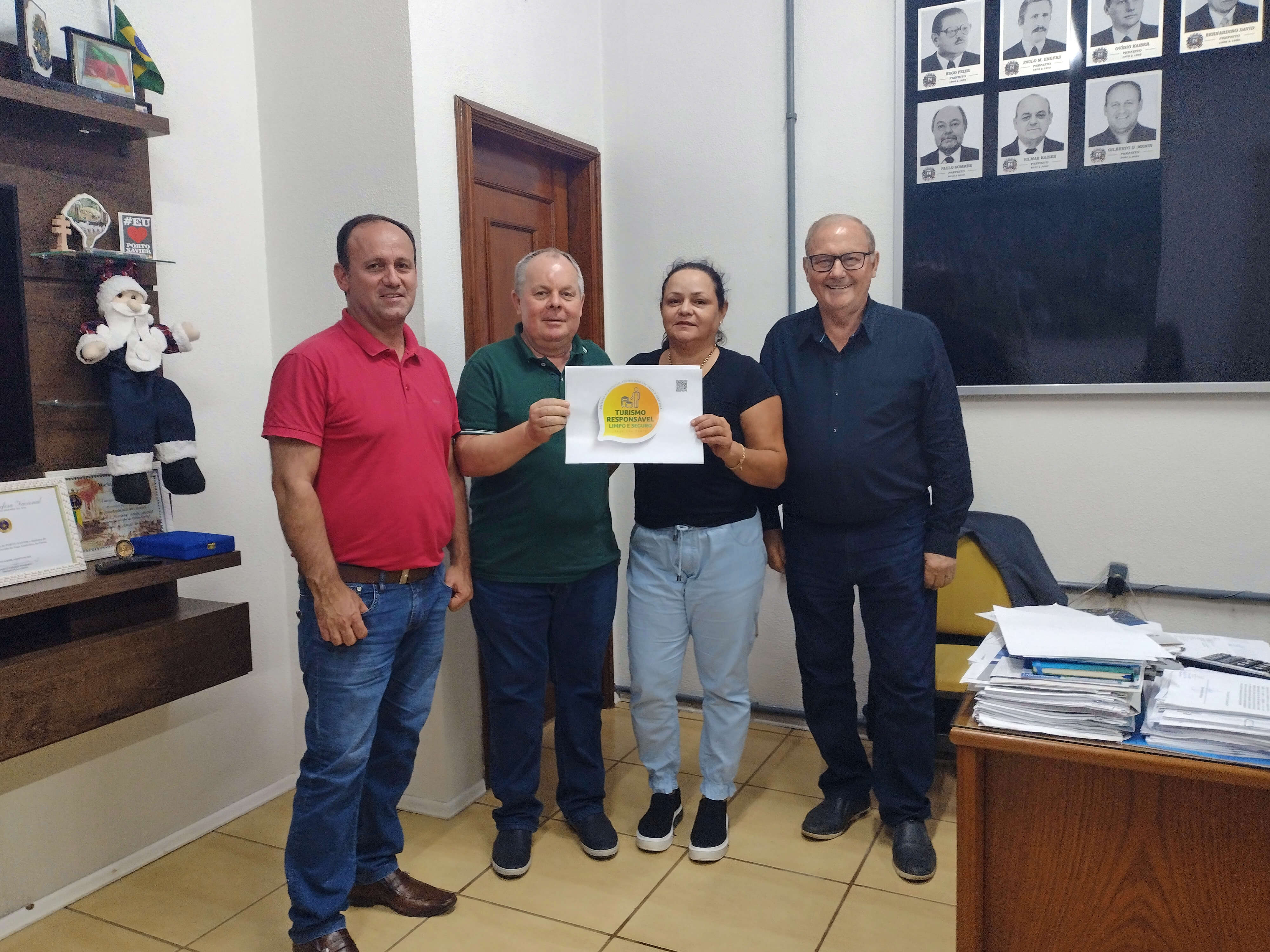 Na tarde de hoje, 17/11, no Gabinete do Prefeito Gilberto Menin, ocorreu a entrega dos selos turismo responsável a estabelecimentos locais. O selo é uma ação do Ministério do Turismo, um incentivo para que os consumidores se sintam seguros ao viajar e frequentar locais que cumpram protocolos específicos para a prevenção da Covid-19, posicionando Porto Xavier como um destino protegido e responsável. Para ter acesso ao selo, as empresas e guias de turismo precisam estar devidamente inscritos no Cadastur (Cadastro de Prestadores de Serviços Turísticos).