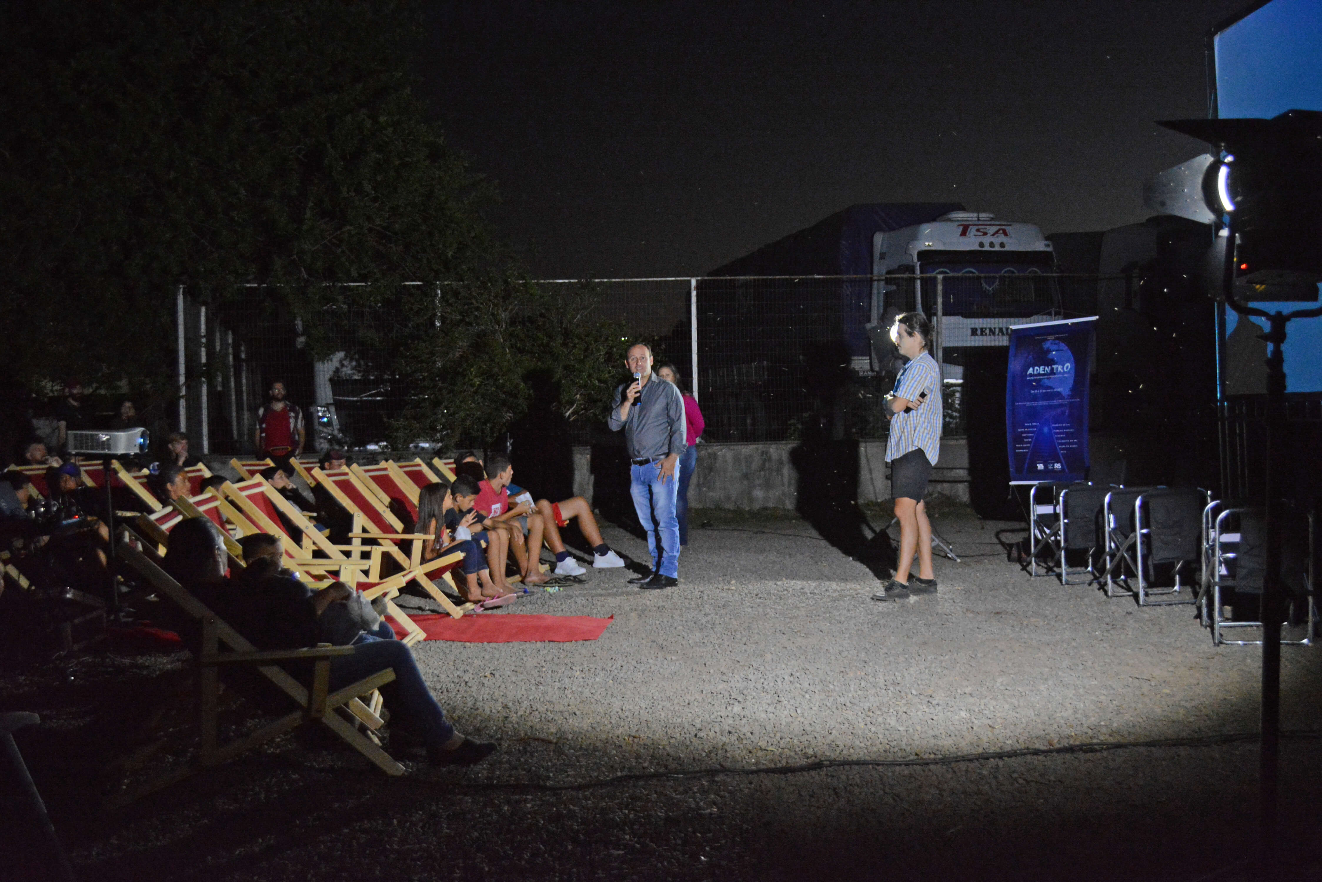 Aconteceu neste sábado, 19, a exibição da Adentro-Mostra Interiorana do cinema Gaúcho, realizado pela Êa Êa Apepê com financiamento do Pró-Cultura/RS, que teve como local o mirante do Rio Uruguai, onde a comunidade pode acompanhar a exibição do documentário Construção, do diretor Leonardo da Rosa e do Longa-metragem Portuñol, da diretora Thais Fernandes.