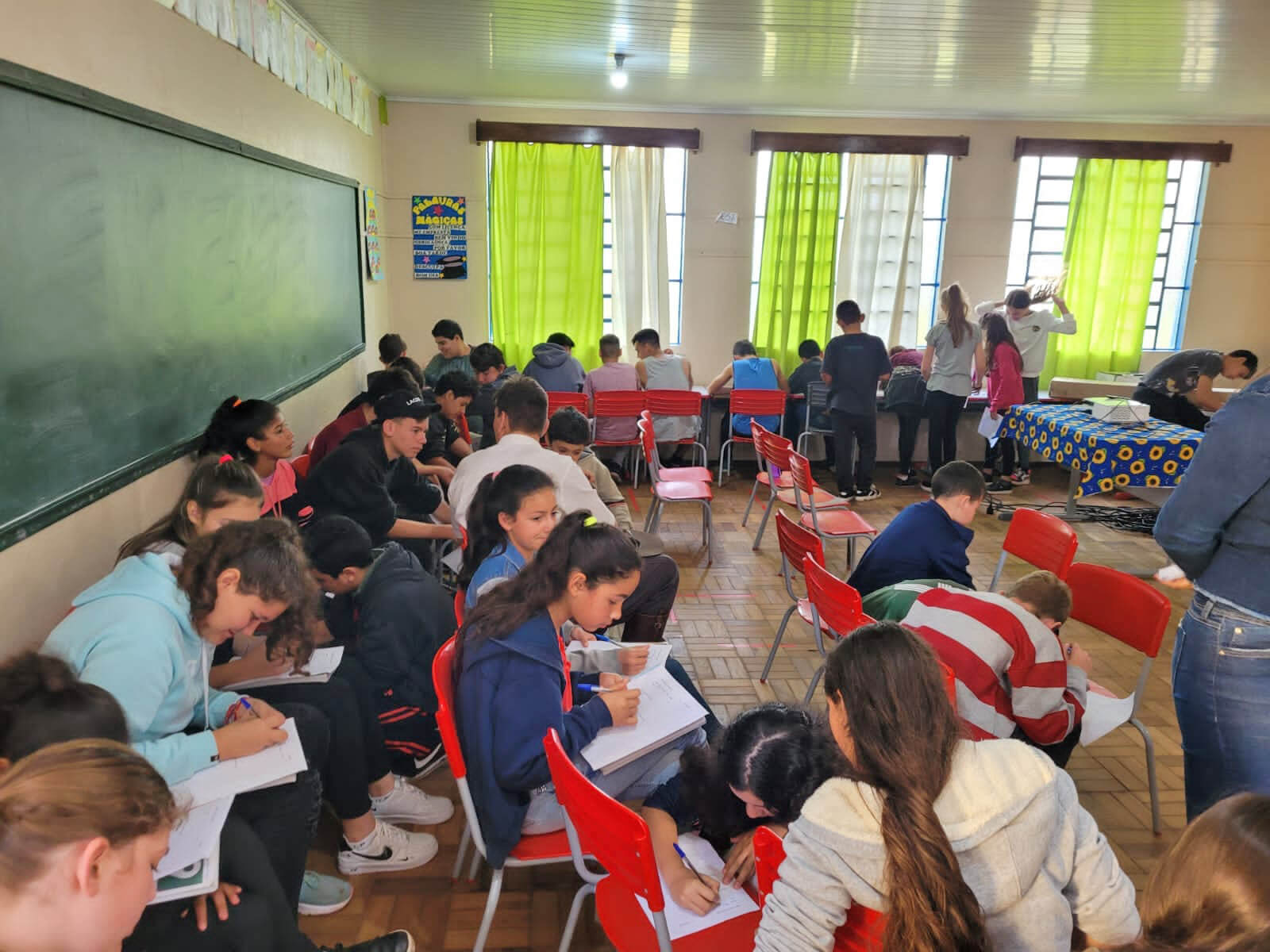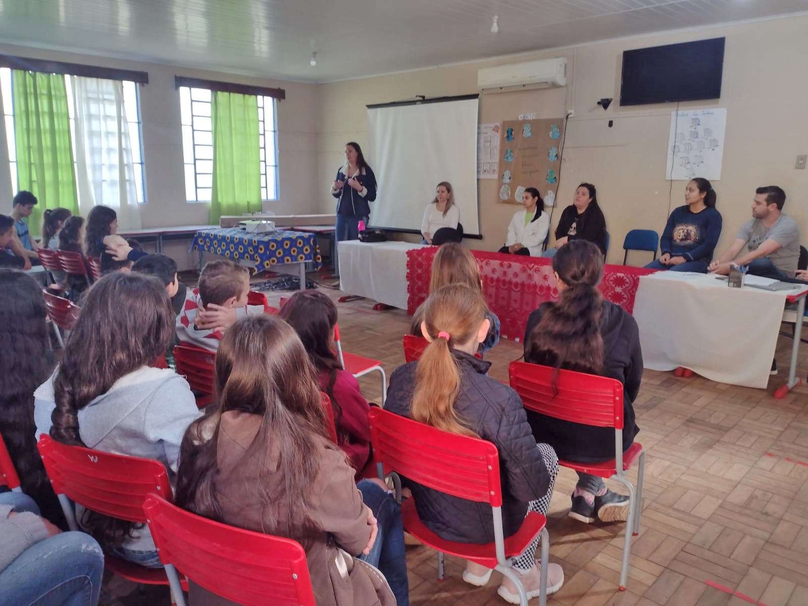 Na manhã de quinta-feira, 21 aconteceu mais uma ação do Programa Saúde na Escola (PSE), desta vez, a unidade educacional visitada pela equipe multidisciplinar foi a E. M. de Ens. Fund. Santos Dumont. O programa tem como objetivo contribuir para a formação integral dos estudantes por meio de ações de promoção, prevenção e atenção à saúde, com vistas ao enfrentamento das vulnerabilidades, que comprometem o pleno desenvolvimento de crianças, adolescentes e jovens da rede pública de ensino.