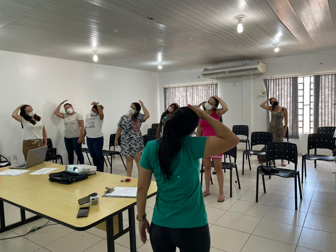 O primeiro encontro contou com a participação da enfermeira Luana Albiero, que explanou o cronograma de temas e atividades que serão abordados no decorrer do projeto, bem como apresentou os profissionais que irão acompanhar o grupo. Na oportunidade, a profissional abordou a importância do pré-natal, propiciando um espaço para as gestantes esclarecerem suas dúvidas quanto aos cuidados durante o período gestacional e com o recém-nascido. Este primeiro encontro também abordou a saúde física da gestante, possibilitando alguns exercícios e alongamentos com a profissional fisioterapeuta Tanara Braga.
